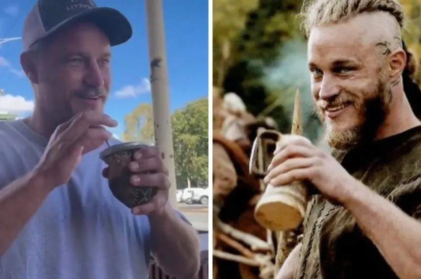 Un video de 27 segundos de Travis Fimmel, actor que personifica a Ragnar Lodbrok en la serie Vikingos, se hizo viral en redes sociales cuando Patricia y Javier, una uruguaya y un argentino, le convidaron un mate. Sucedió en Echua, una ciudad de Australia.