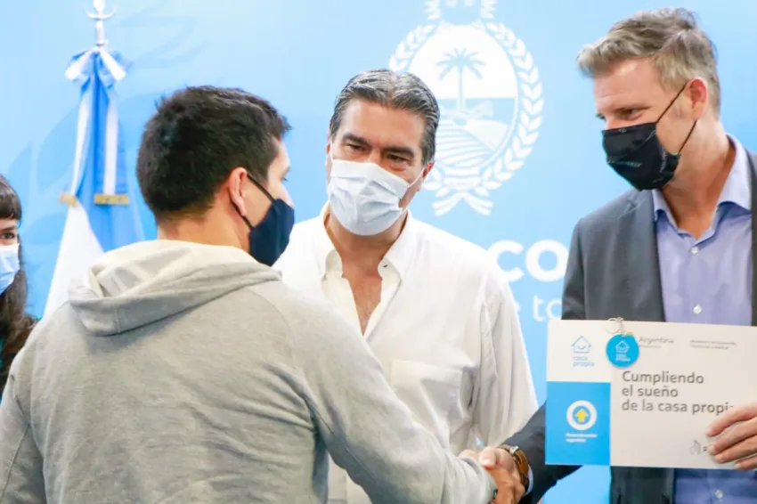 Este martes, el gobernador Jorge Capitanich y la vicegobernadora Analía Rach Quiroga recibieron al secretario nacional de Desarrollo Territorial, Luciano Scatolini. Entregaron 26 créditos PROCREAR de un total de 170 adjudicadjudicatarios y firmaron un convenio para el desarrollo urbanístico de la Chacra 277 (La Rubita 2), una superficie de 36 hectáreas en Resistencia donde se construirán 1.524 viviendas más.