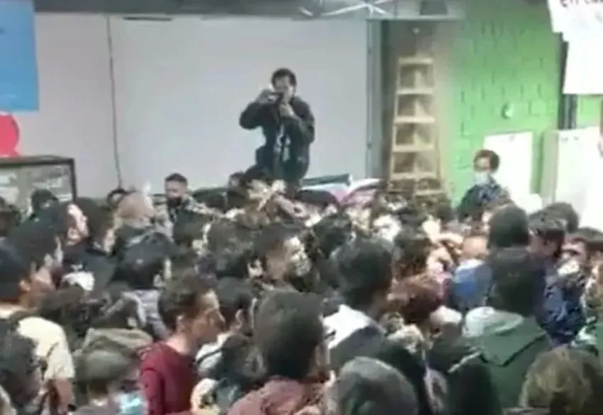 Los videos del enfentamiento se viralizaron por redes sociales donde se puede ver con claridad como la multitud de estudiantes protagoniza la intensa pelea, que se habría originado por una discusión por los espacios de propaganda dentro del edificio, tras las elecciones de la semana pasada. Militantes del Nuevo Más habrían descolgado y dañado carteles del PTS, hecho que daría comienzo al episodio.