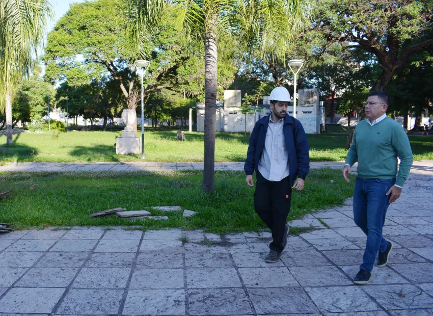 El Secretario explicó que los trabajos contemplan la renovación y creación de nuevas sendas peatonales, reemplazándose el 60% de las lajas existentes desde 1999, y se instalarán nuevas veredas de hormigón monolítico que mejorará la circulación de los peatones y no requieren de mantenimiento. "Se respetarán los mismos lugares donde existen hoy sendas peatonales, con la misma superficie y sin perjudicar los espacios verdes de la plaza", aclaró.