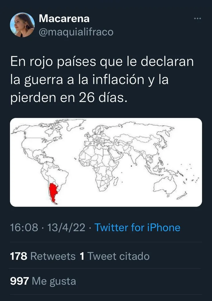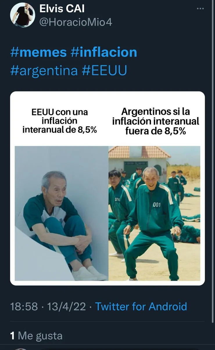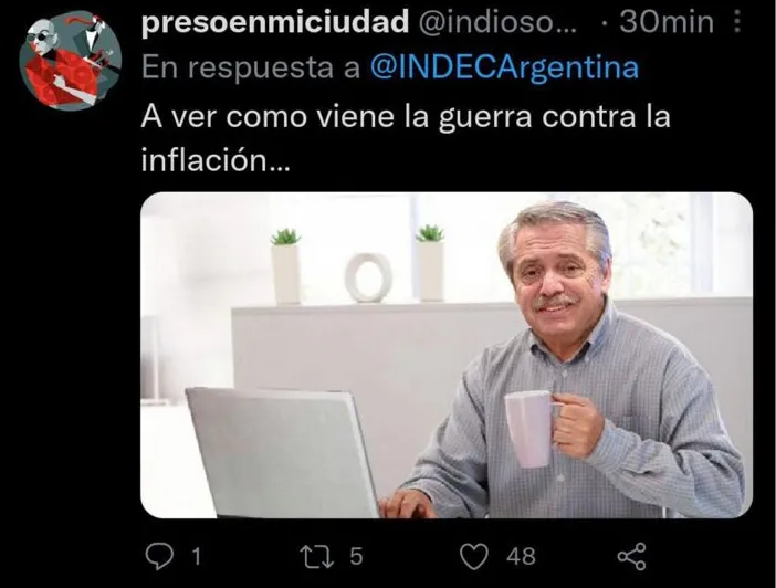 A pocos minutos de que se dieron a conoce los datos, Twitter se llenó de memes haciendo referencia no solo a la cifra sino también a la "guerra contra la inflación" que el presidente, Alberto Fernández, había anunciado.
