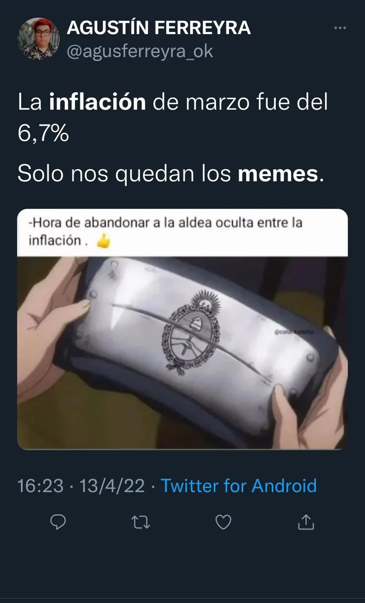 Este miércoles se dio a conocer que la inflación de marzo es del 6,7%, el registro más alto en los últimos desde 1991, y las redes sociales no tardaron en llenarse de memes.