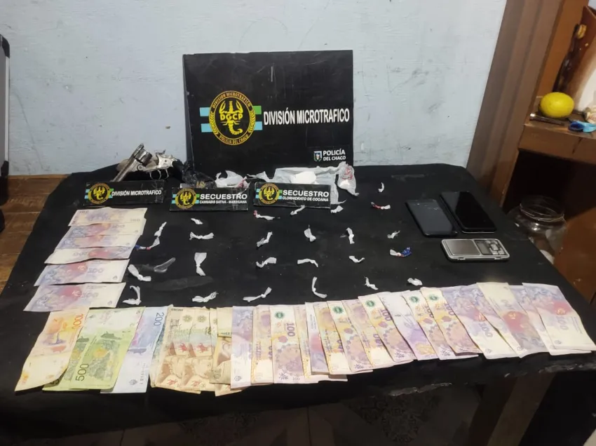 Por ello, los agentes antinarcóticos, en compañía de un ayudante fiscal, ingresaron a la vivienda, ubicada en Villa Paraguay de la ciudad de Barranqueras, donde la principal investigada, una mujer de 37 años, quedó detenida por detectarse en el lugar 76 gramos de cocaína distribuidos en varios envoltorios. Además, se hallaron 4 gramos de marihuana repartidos en dos bochitas, una balanza de precisión, dinero en efectivo por la suma de $4.490 y además, un revólver calibre 38 color negro.