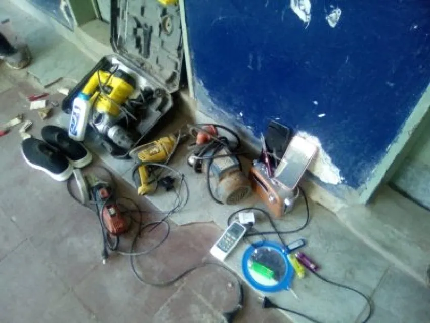 Una vez en el lugar, demoraron a un joven de 22 años, que tenía en su poder un radiograbador, una bomba de agua, un taladro, una amoladora, el control de un aire acondicionado, un par de zapatillas, un roto percutor y dos celulares.