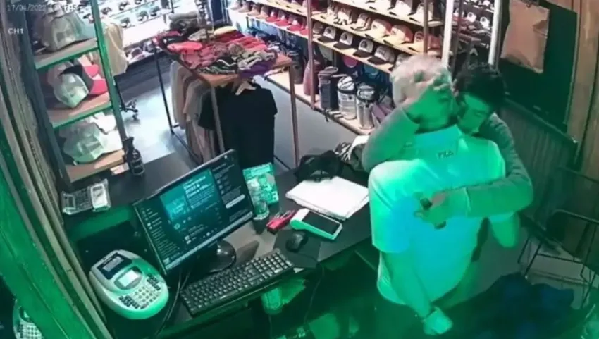 La secuencia fue captada por la cámara de seguridad que la víctima tiene dentro de su local. Allí se puede ver cómo se mantiene detrás del mostrador hasta que el ladrón lo llama para que tome la mochila.