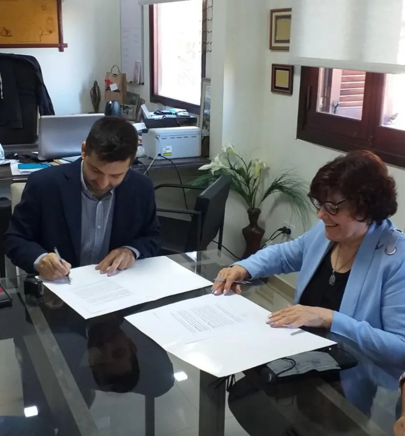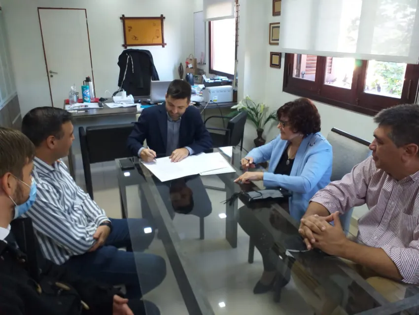 El acto de firma contó con la presencia del secretario de Coordinación Gubernamental del Municipio, Rubén Riquelme, el rector Héctor Bustos, Fernando Aguzín, profesor de Prácticas Profesionales para la Tecnicatura en Niñez Adolescencia y Familia, y la profesora de Prácticas Profesionales para la Tecnicatura en Administración de Recursos Humanos.