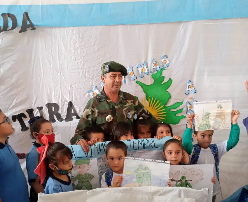 Un niño de 6 años abrazó al ex combatiente Evaristo Vargas y le confesó que era su "héroe" ante toda la escuela, en la Jornada de Lectura sobre Malvinas en la EEP N°217. "En 40 años no he vivido una ocasión tan emotiva como esta", confesó Vargas.