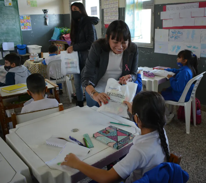 Como ocurrió en otras instituciones de la capital chaqueña, la secretaria de Desarrollo Humano, Laura Balbis, entregó personalmente a cada alumno y alumna la bolsa con los elementos de estudio y lo hizo junto a representantes del Ministerio de Educación y del centro comunitario municipal de Villa Río Negro.