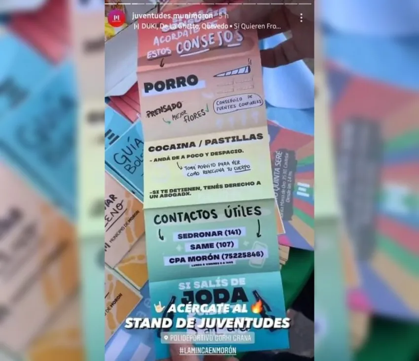 Una historia en la cuenta de Instagram de la Dirección de Políticas para Juventudes de Morón se volvió viral cuando publicaron: "Cocaína, pastillas, tomá poquito para ver cómo reacciona tu cuerpo", entre otras recomendaciones sobre como consumir drogas recreativas.