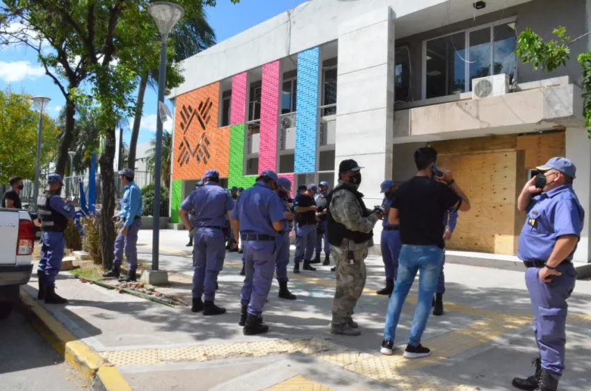 Durante un lapso de horas los movimientos sociales que se manifestaban frente a la Municipalidad de Resistencia dejaron encerrados a los empleados y contribuyentes. Tuvo que intervenir la Policía.