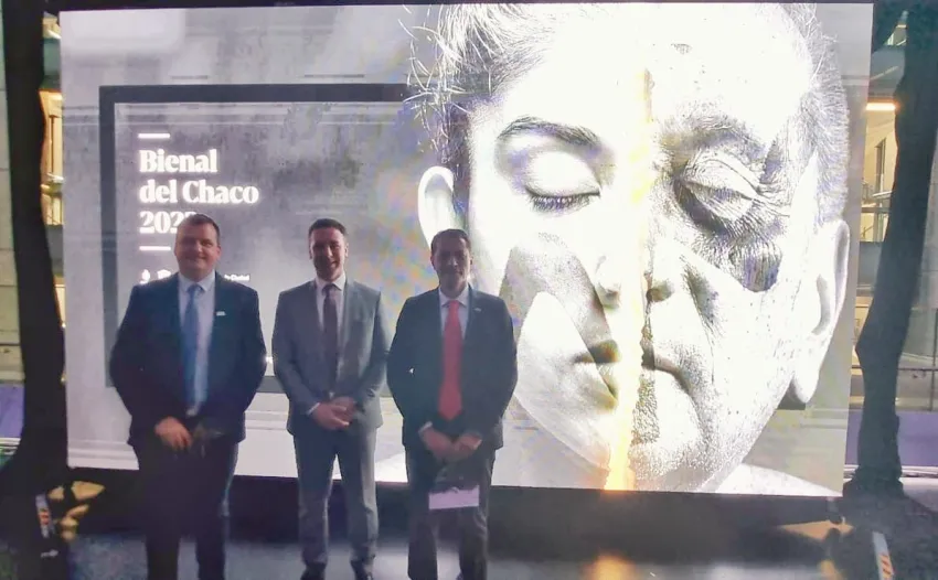 El rector de la Universidad, Germán Oestmann, junto al secretario de Cooperación y Servicios Públicos, Néstor Dudik y el representante del Instituto de Ambiente de la institución, Edgardo Chapur, acudieron al Centro Cultural Néstor Kirchner de Buenos Aires, donde se realizó el lanzamiento oficial de la XII Bienal Internacional de Esculturas 2022, que se realizará en la provincia de Chaco.