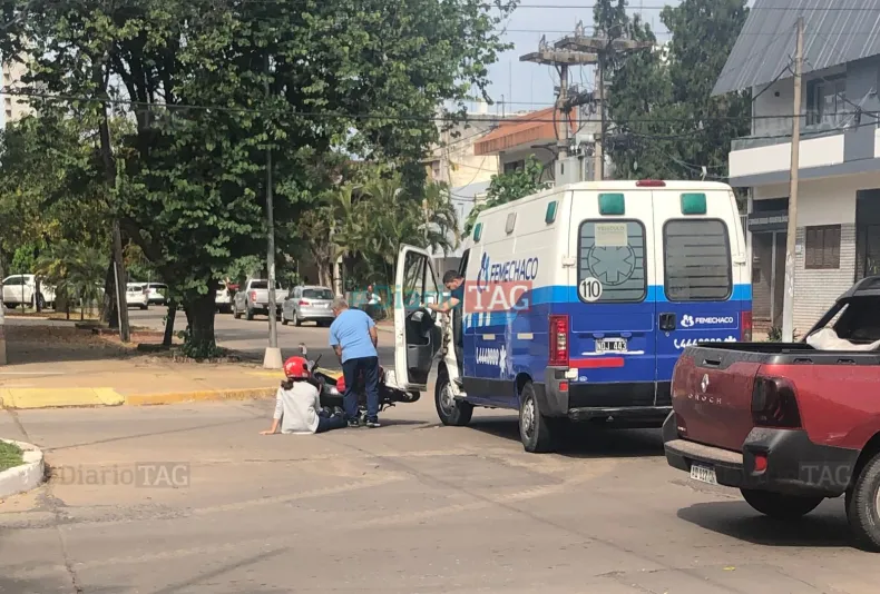Un impacto se registró cerca de las 13 horas en la esquina de la avenida Wilde y la calle Santa Fe. Los involucrados en el choque fueron una motocicleta marca Guerrero Trip 110 roja y una ambulancia de Femechaco.