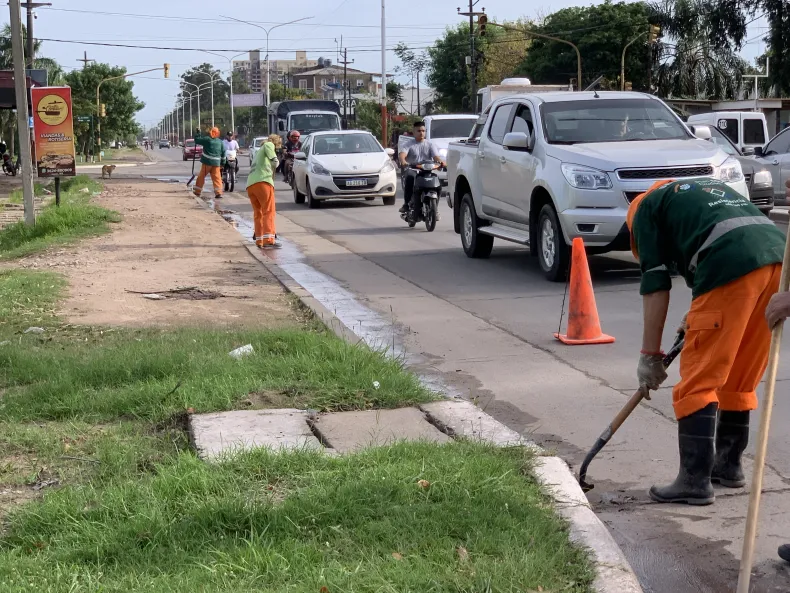 Se realizaron tareas de saneamiento integral sobre la avenida Castelli, entre Las Heras y España, en el límite con Barranqueras. El trabajo fue de limpieza y erradicación de mini basurales que se crearon en espacios públicos.