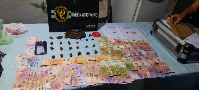 Dentro del domicilio se halló una gran cantidad de cogollos de marihuana, que arrojaron un peso de 46,2 gramos, además de 3 bochitas de cocaína, con un peso total de 0,2 gramos, y dinero en efectivo por la suma de $23.300.