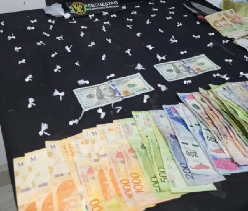 En el registro del inmueble hallaron 71 envoltorios tipo bochitas y un envoltorio de mayor volumen con una sustancia blanca, los cuales al realizar la prueba de campo arrojaron positivo cocaína, con un peso de 14,1 gramos, además incautaron recortes varios, un cuchillo, una tijera, $27.080 pesos y 200 dólares.