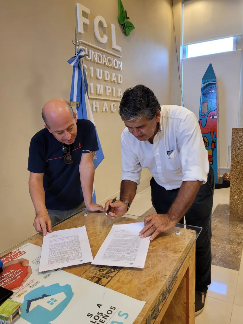 De la firma del Acuerdo de Pasantia participaron el Titular de Fundación Ciudad Limpia Arquitecto Carlos Alabe; el Director del CE.FO.L Prof. Carlos Peralta y el Coordinador Interinstitucional Dario Núñez junto a la Lic. Mariana Sampaolesi.