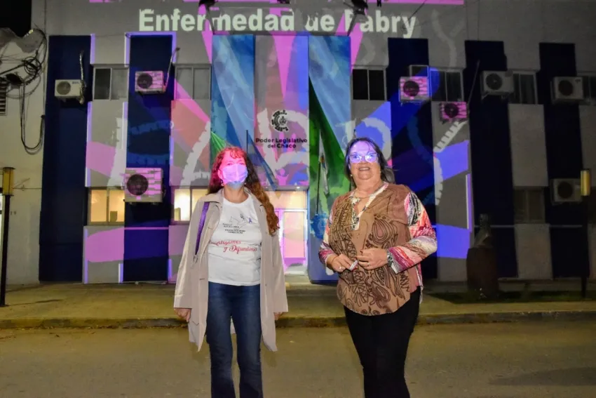Este viernes, las luminarias del edificio del Poder Legislativo se encendieron de color violeta para concienciar a la población sobre la enfermedad de Fabry. La diputada Alicia Digiuni acompañó a Nancy García Sengher, fundadora de ACEL Nea, organización sin fines de lucro que se dedica a la difusión, concientización y mejora de la calidad de vida de las personas que padecen una enfermedad poco frecuente.