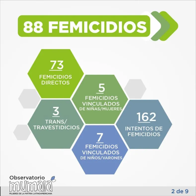 El observatorio Mujeres de la Matria Latinoamericana (MUMALA) dio a conocer un informe por el cual se pudo saber que desde el 1 de enero hasta el 29 de abril del 2022 hubo 88 femicidios a lo largo y ancho de Argentina.