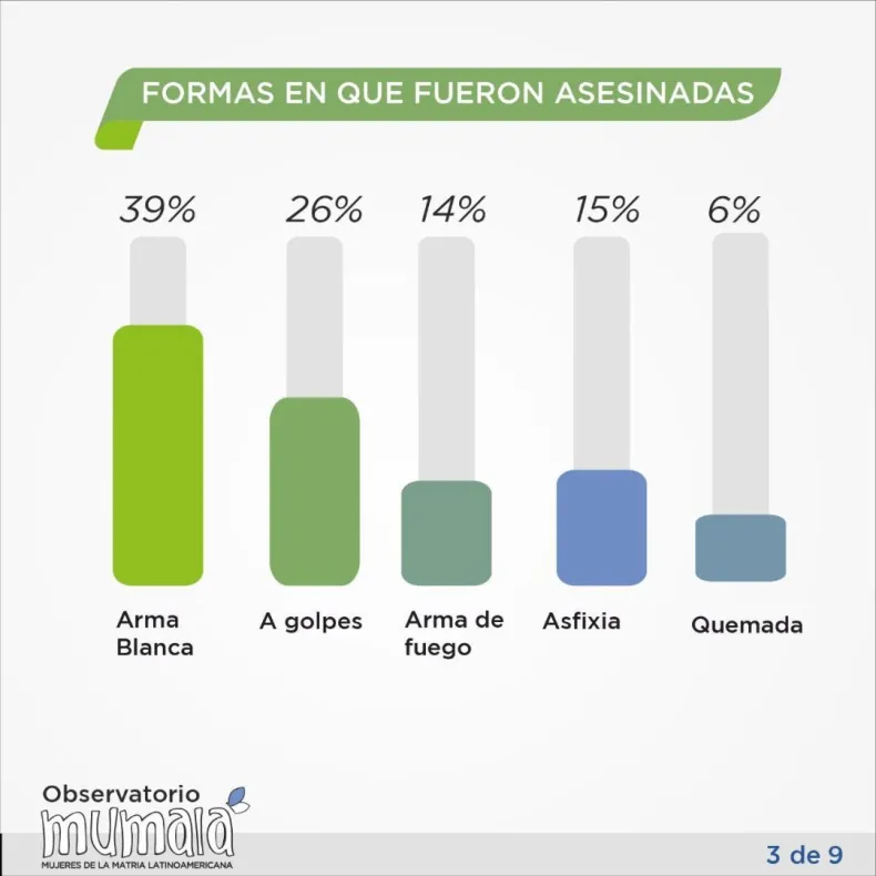 Mediante al mismo también se pudo saber que un 66% de los femicidios son cometidos por parejas o exparejas, mientras que el 10% son por familiares directos.
