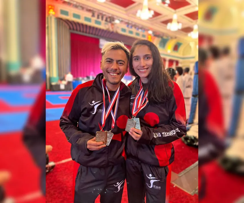 Milagros Acosta y Axel Vargas fueron campeones de un torneo de Taekwondo ITF realizado en Inglaterra