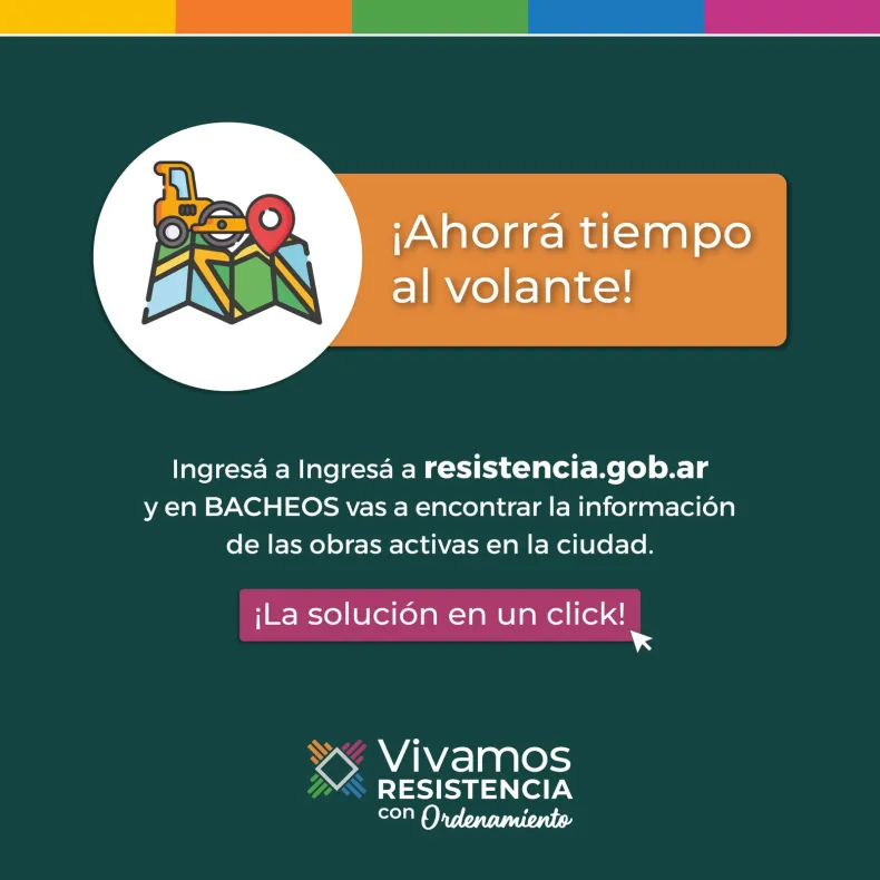 El Municipio de Resistencia desarrolló una herramienta digital que le permite a los vecinos y vecinas saber en tiempo real donde el tránsito está cortado por trabajos de bacheos o por el desarrollo de otras obras que impiden la libre circulación. Esta información está disponible en https://resistencia.gob.ar/obras/