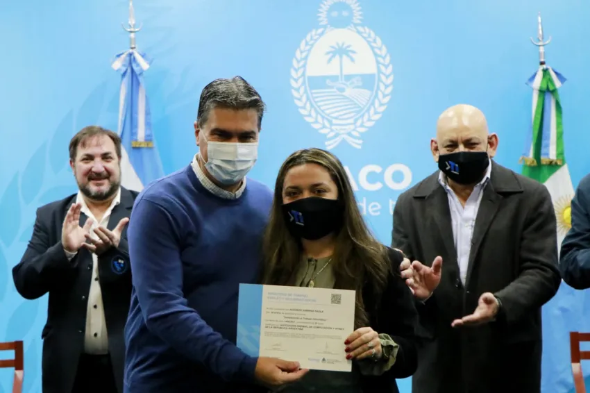 El acto de entrega de certificados tuvo lugar en el Salón Obligado de Casa de Gobierno y contó con la presencia del diputado Hugo Sager; secretaria general de la CGT, Graciela Aranda; el secretario general de la asociación, Ezequiel Tosco; el delegado NEA, Carlos Azcona; entre otros funcionarios provinciales.