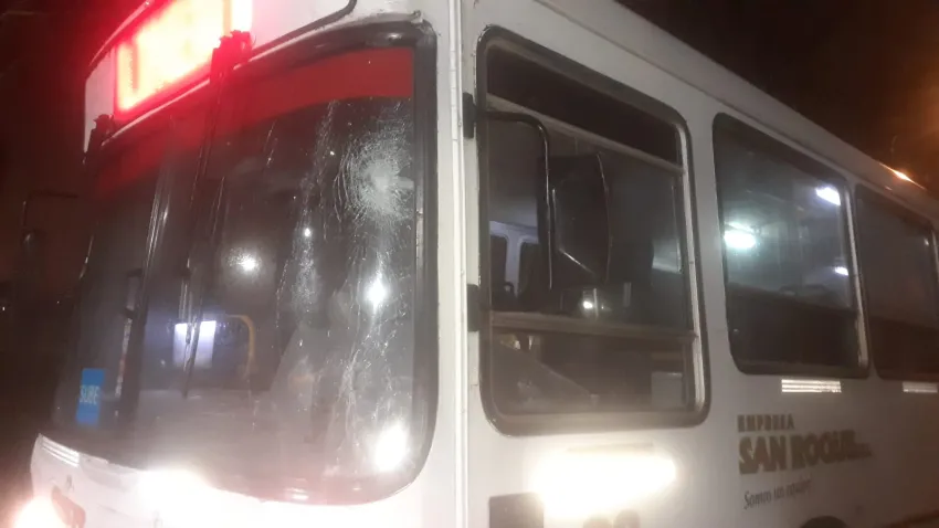 Como no pudieron robarle a un pasajero atacaron a ladrillazos un colectivo y se fugaron