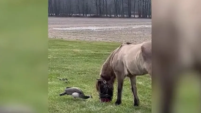 Amistad animal: la curiosa unión entre un caballo y un pavo real