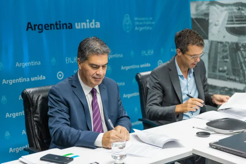 En Buenos Aires, el gobernador Jorge Capitanich suscribió un convenio con el titular del Ente Nacional de Obras Hídricas de Saneamiento (Enohsa), Enrique Cresto, para extender el sistema de redes domiciliarias de agua potable en cinco localidades. "Estamos trabajando con distintas fuentes de financiamiento y programas para llegar con la universalización de agua potable en todas las localidades y llegar al 75 por ciento en redes de cloaca para el 2023", subrayó el mandatario.