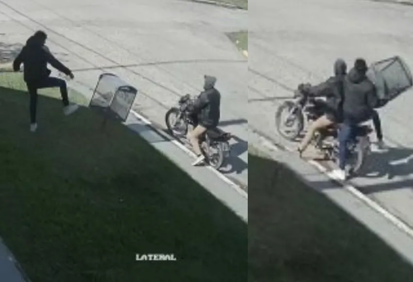 En el testimonio audiovisual se observa como los delincuentes rompen el soporte para sustraer el cesto y se lo terminan llevando en la motocicleta en la que se movilizaban