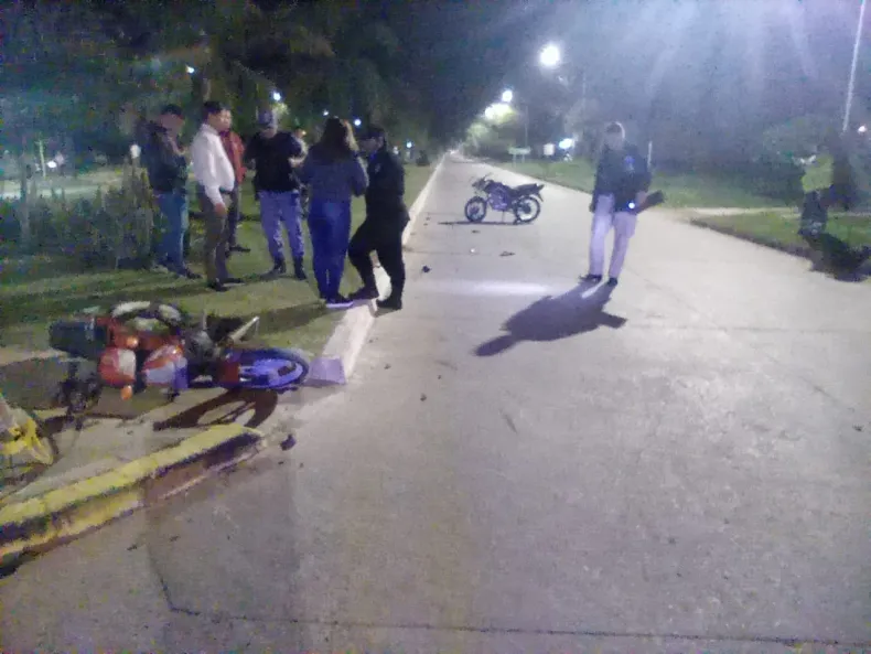 El segundo accidente se produjo a las 21:30 en Av. 33 y calle 20 del barrio B° Puigbo, entre una moto conducida por un adolescente de 14 años, quien iba acompañado por otro menor de la misma edad, y una motocicleta marca CORVEN 150 c.c., color negro, con dos ocupantes de 30 y 17 años. Estos últimos fueron trasladados en ambulancia al hospital local en estado de inconsciencia.
