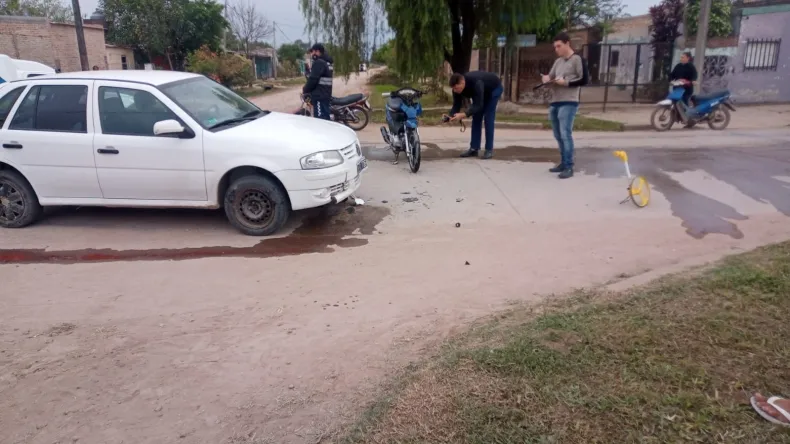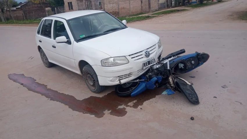 En la mañana de hoy, a las 9 de la mañana aproximadamente, en la Calle 41 del barrio Santa Mónica de Sáenz Peña, un auto chocó a una motocicleta provocándole lesiones al conductor del rodado de menor porte.