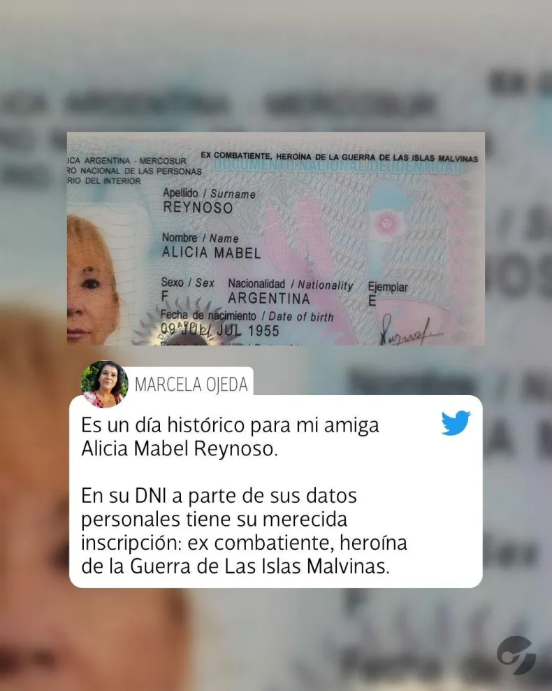 "En su DNI parte de datos personales tiene su merecida inscripción: ex combatiente, heroína de la Guerra de Las Islas Malvinas", detalló.