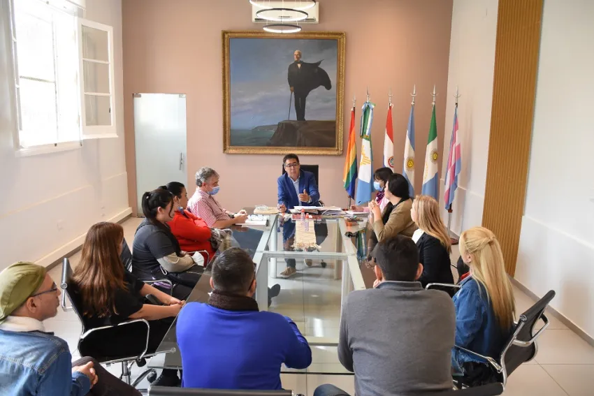 El intendente de Resistencia, Gustavo Martínez, mantuvo un encuentro con integrantes de la Asociación de Titiriteros, Actores y Coreógrafos del Chaco (ATACCH) con el objetivo de diagramar actividades conjuntas para artistas del medio en el marco de la Bienal de Esculturas 2022.