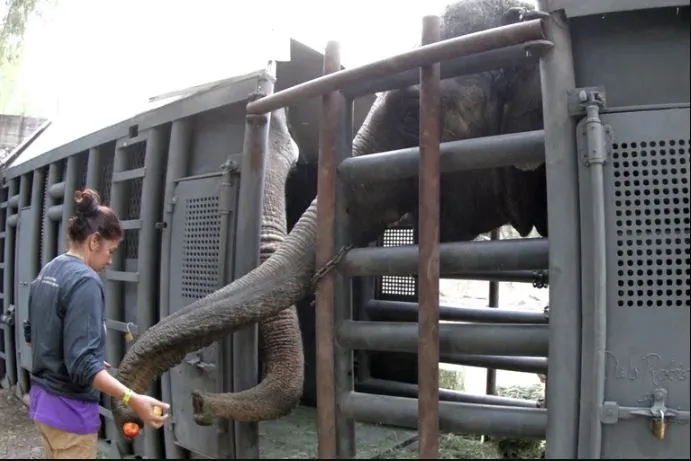 Las elefantas viajan cada una en una caja especial que pesa alrededor de 5 toneladas y miden 5 metros de largo, 2 metros de ancho y 3,20 metros de altura. Esto, avalado por el Servicio Nacional de Sanidad y Calidad Agroalimentaria (Senasa), les garantiza un traslado cómodo y seguro. Ambas cajas cuentan con una cámara para monitorear a cada elefanta y evaluar su estado de manera constante.
