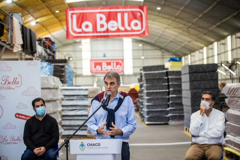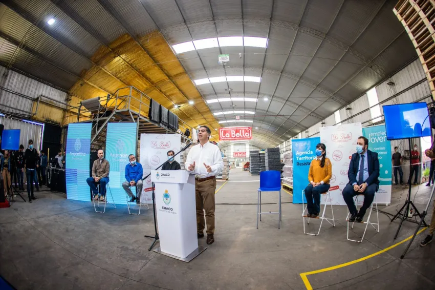 El ministro nacional Claudio Moroni siguió la presentación de manera virtual y el subsecretario de Articulación Territorial, Gerardo Girón, acompañó de manera presencial junto al ministro de Industria, Producción y Empleo de la provincia, Sebastián Lifton, a la ministra de Desarrollo Social, Pía Chiacchio Cavana, al titular de la Agencia territorial Chaco del Ministerio de Trabajo de la Nación, Santiago Maidana, y al subsecretario de Empleo, Lucas Cepeda, en la planta de la empresa La Bella. También participaron los diputados Hugo Sager y Nicolás Slimel.