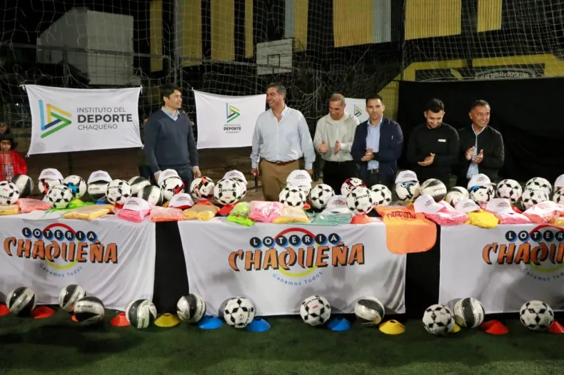 Seguidamente, procedió a la entrega de elementos deportivos para las divisiones formativas de diferentes clubes de la localidad, donde se concedieron pelotas, pecheras y diferentes elementos de entrenamiento. Esta acción forma parte del Plan de entrega de elementos a las ocho ligas que integran la Federación de Fútbol Chaqueño a lo largo de la provincia, con una inversión de 4 millones de pesos y financiado por Lotería Chaqueña.