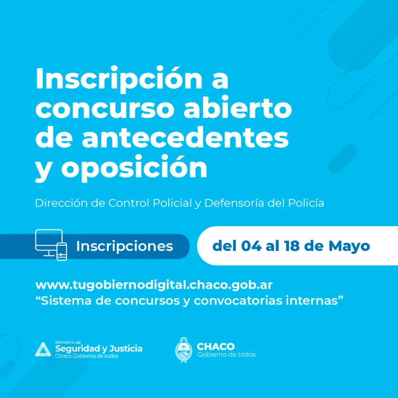 La inscripción se realiza mediante un formulario disponible en el Sistema de Concursos y Convocatorias Internas, accesible desde la plataforma de servicios Tu Gobierno Digital - TGD (www.gobiernodigital.chaco.gob.ar). En la inscripción deberá adjuntar en formato digital la documentación que acredite los antecedentes invocados en el formulario de inscripción.