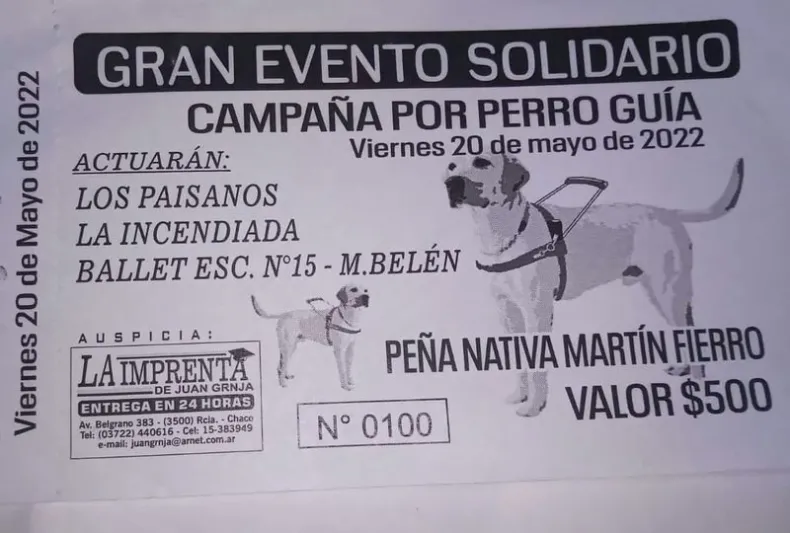 Asimismo, recordó que: "El evento solidario que se va a realizar en la peña es para juntar fondos, yo tengo una cuenta en el Banco del Chaco, pero está un poco quedada. Con lo que se junte, servirá para enviar una primera cuota para adquirir el perro guía", cerró.