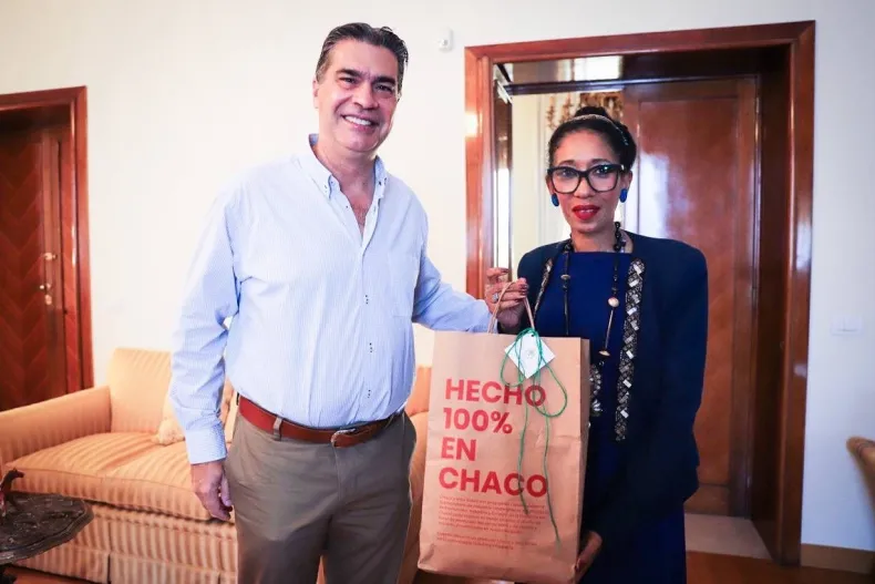 Capitanich valoró además la figura de Silva, primera embajadora argentina mujer y afrodescendiente en El Vaticano, a quien entregó a modo de obsequio productos 100% chaqueños como alfajores artesanales de la marca La Tana, emprendedora de Sáenz Peña y un saco diseñado por Victor Joaquin, de la marca Chacú.
