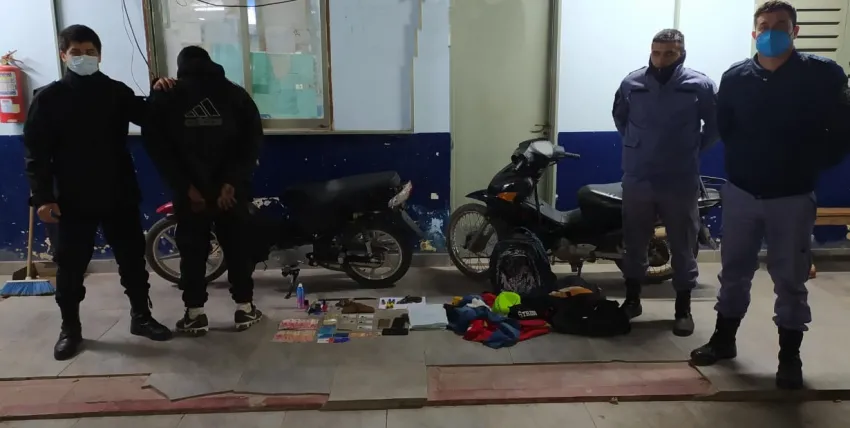 Los motociclistas fueron interceptados en calle 17 y 26 del mismo barrio pero los conductores abandonaron los rodados y las mochilas y continuaron la huida a pie. Uno de ellos fue reducido por los efectivos policiales y se procedió al secuestro una moto marca Honda Wave 110 cc, de otra motocicleta marca CORVEN 110, tres mochilas con prendas de vestir varias, una barreta de hierro.