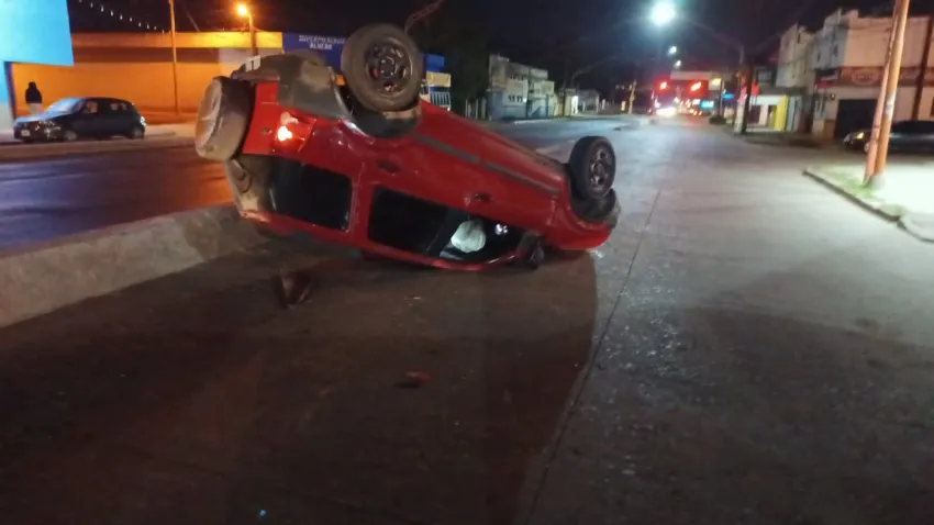 Resistencia: chocó a un auto estacionado y volcó en plena avenida Alvear