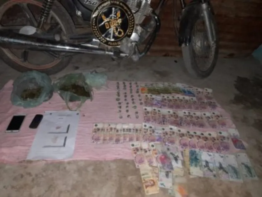 Ya en el domicilio, los agentes requisaron rincón por rincón hasta lograron secuestrar la suma de 10 mil pesos en efectivos, una moto, celulares y 449 gramos de marihuana.