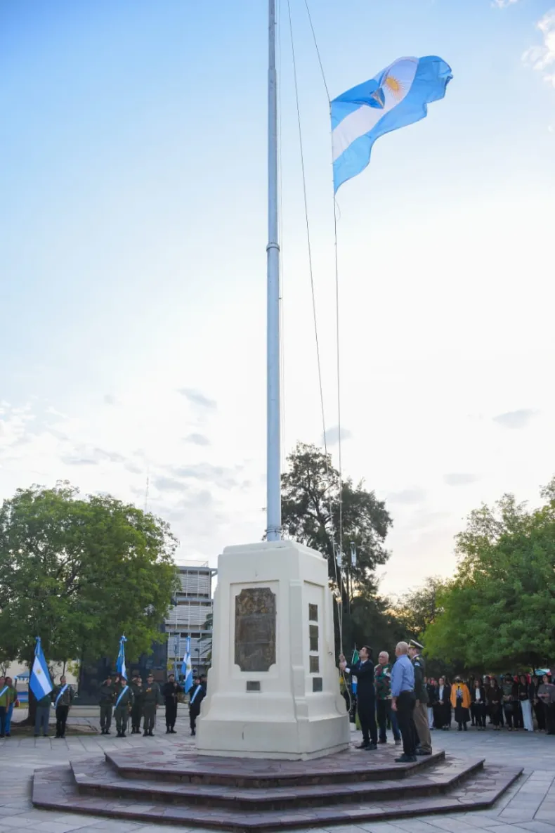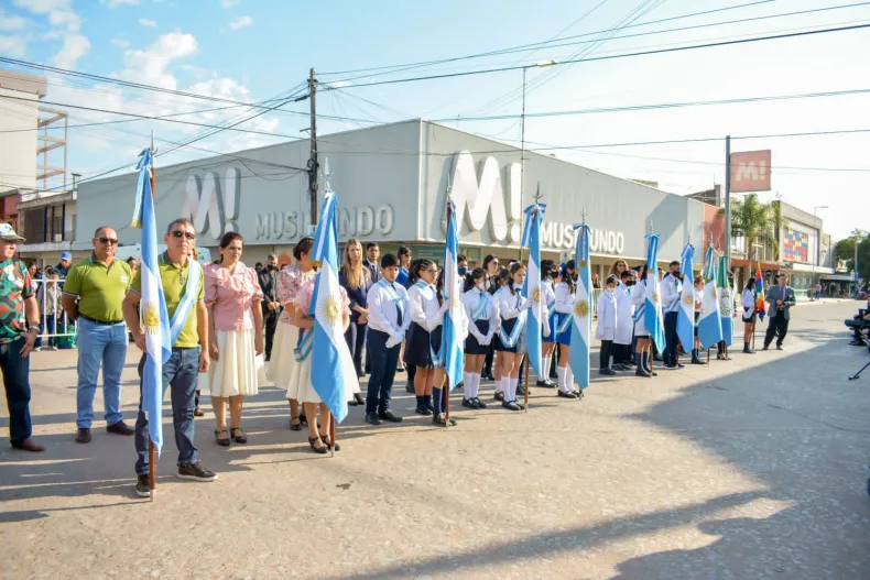 El acto central se realizó en la plaza San Martín, sobre calle 12, la conmemoración arrancó con el izamiento del Pabellón Nacional, también en la plaza central, y el Solemne Tedeum en la Catedral San Roque.