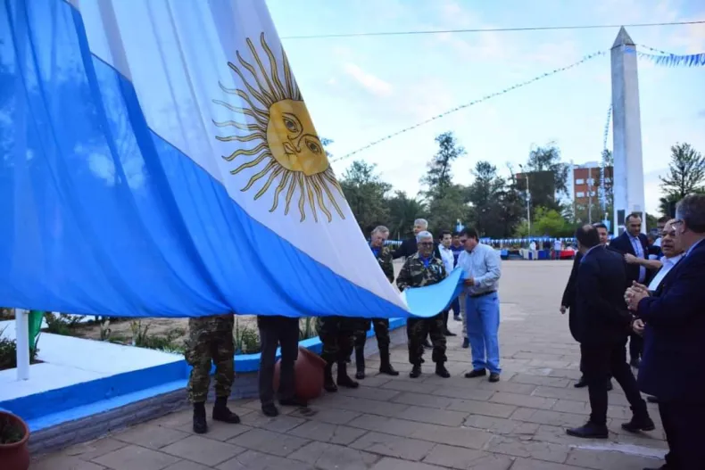 Autoridades municipales de Castelli participaron del izamiento de banderas en la plaza central
