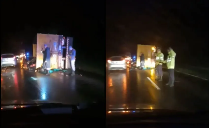 Debido a la poca visibilidad, producto a la intensidad de las lluvias un camión que circulaba por la Ruta Nacional N° 95 en el kilómetro 1043 volcó su acoplado donde transportaba verduras. Según publicó el portal Vía Chaco,no hubo que lamentar personas heridas.