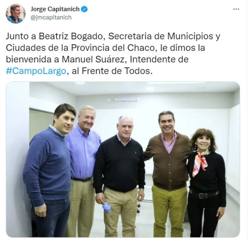Este jueves por la noche, Capitanich confirmó que Suárez "permite una mayor consolidación política territorial y un mayor fortalecimiento del Frente de Todos" y que estará presente este sábado en el Congreso del cual participará el presidente, Alberto Fernández.