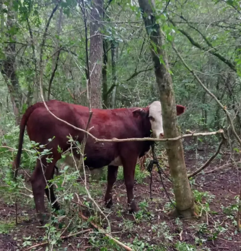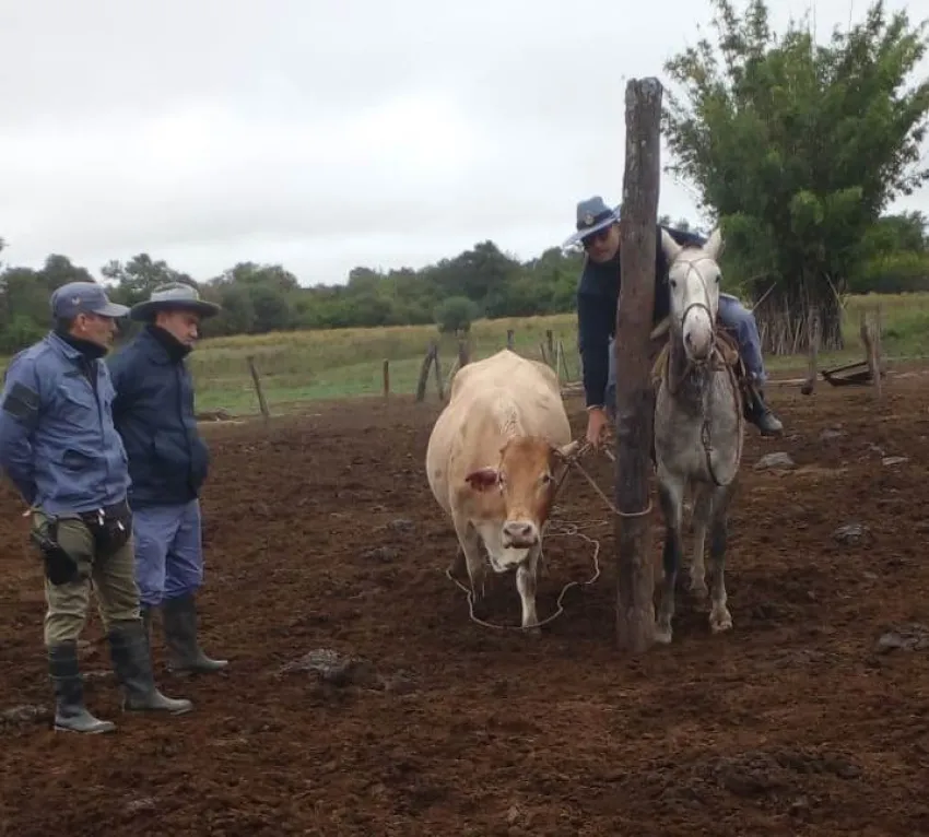 Los efectivos rurales comenzaron a realizar el seguimiento que orientaban hacia el sur, realizando un amplio rastrillaje sobre la zona. A uno 5 km del lugar, luego de atravesar un monte de gran vegetación hallaron al animal sustraído con tramos de soga en su cogote y alborotada, por ello con ayuda de equinos se logró enlazar al vacuno posterior arreo hasta el corral.