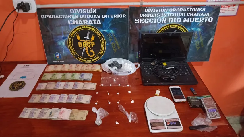 En el segundo domicilio se procedió al secuestro de 17 envoltorios de cocaína con un peso total de 101,7 gramos, dos balanzas digitales de precisión con restos, recortes varios, un teléfono celular, la suma de $110.880, una notebook, dos pendrives y un cuchillo con restos de droga.