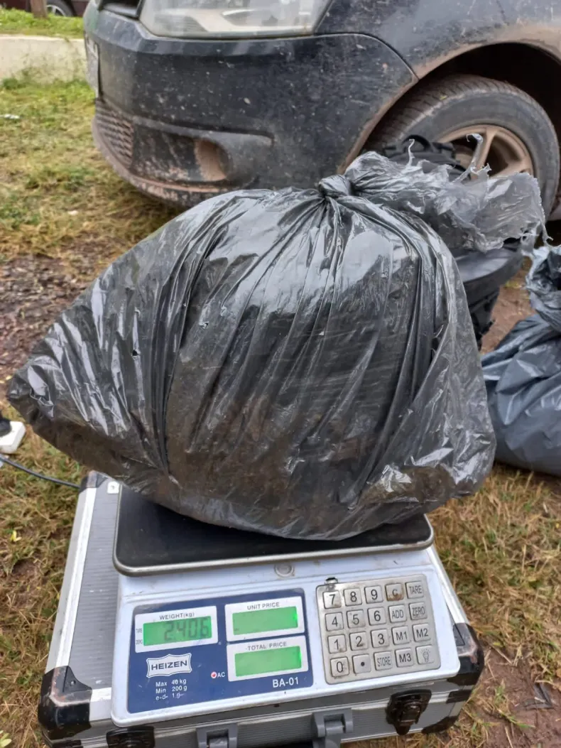 Los oficiales pudieron reconocer inmediatamente tres bolsas grandes de polietileno que contenían un peso total de 8,151 kilos de marihuana, además se secuestraron dos celulares y 29.610 pesos.